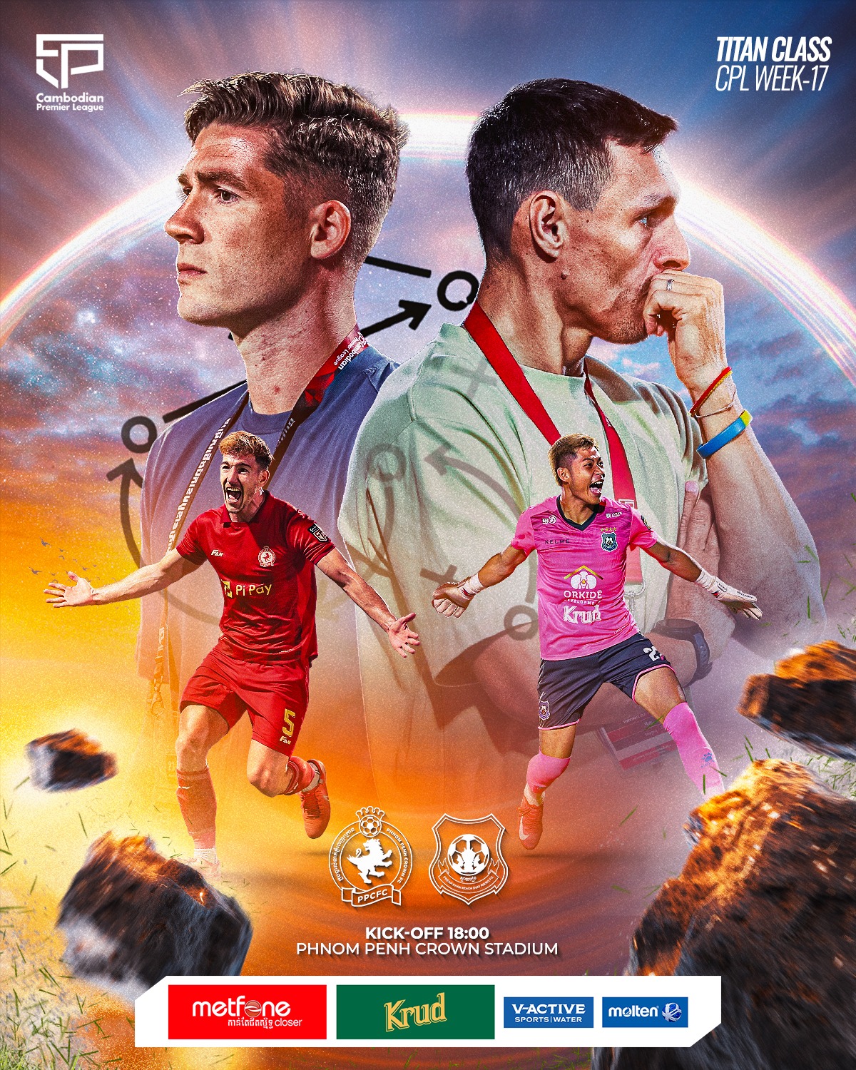 ការប្រកួតសប្តាហ៍ទី១៧ នៃជម្រើសជើងឯក ខេមបូឌានព្រីមៀរលីគ ឆ្នាំ២០២៥/២៦ កំពុងក្លាយជាចំណុចដ៏ទាក់ទាញសំខាន់ និងក្តៅបំផុតមួយ ខណៈដែលក្រុមលេខ១ ព្រះខ័នរាជស្វាយរៀង ត្រូវជួបជាមួយក្រុមលេខ២ ភ្នំពេញក្រោន ក្នុងការប្រកួតដែលអាចស្វែងទៅរកជើងឯករដូវកាលនេះ ហើយនេះមិនមែនត្រឹមជាការប្រកួតធម្មតាទេ ប៉ុន្តែជាការប្រកួតប្រជែងរវាងក្រុមដែលមានស្ថេរភាព និងគុណភាពខ្ពស់បំផុតនៅ ខេមបូឌានព្រីមៀរលីគ បច្ចុប្បន្ន។
